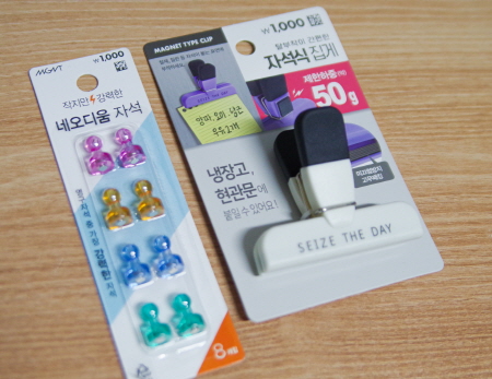 집이 사무실 처럼 변해간다. 이런저런 메모나 사진, 잡다한 것들을 붙이려고 냉장고에 붙일 자석을 샀다.